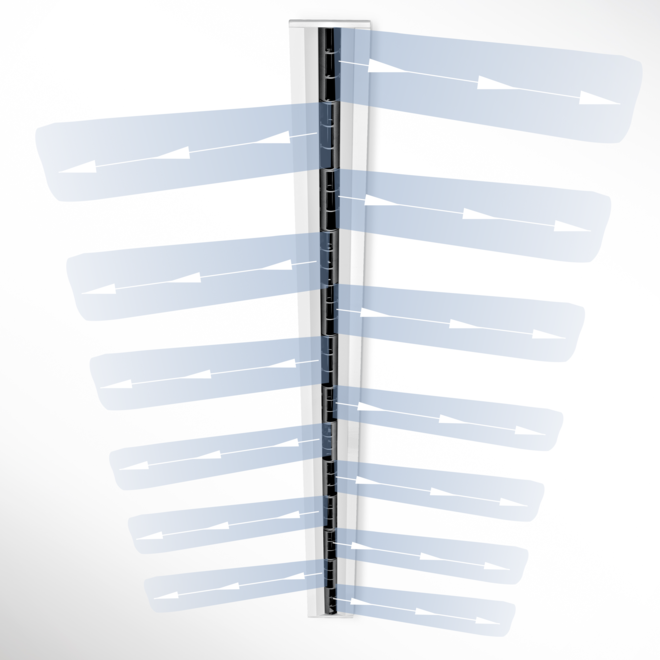 Air distribution optionally horizontal alternating, alternating angled, vertical, one-way horizontal left or one-way horizontal right possible.