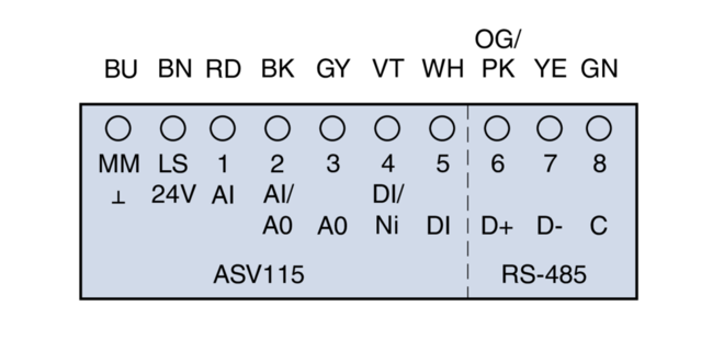 Input for switch contact Vmin or temperature sensor, configurable | Volt-free or Ni1000, 0 – 50 °C |