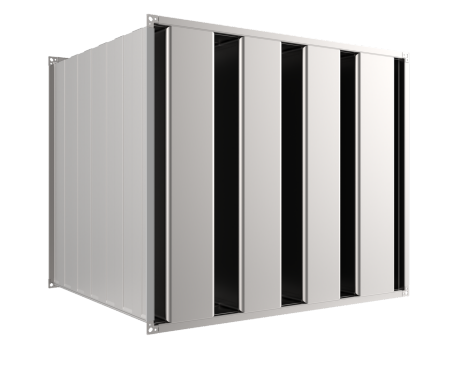 De lengte (L) van geluiddempercoulissen verwijst naar de luchtstroomrichting.