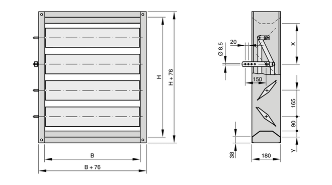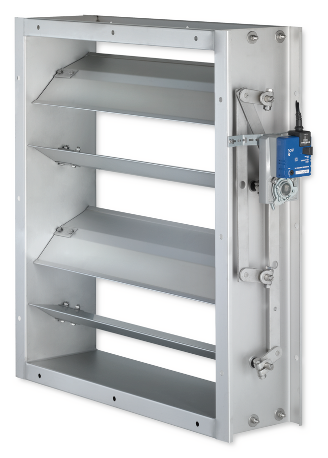 Jalouziekleppen in rechthoekige uitvoering voor luchthoeveelheids- en drukinregeling en het luchtdicht sluiten van luchtkanalen en openingen in wanden en vloeren.
