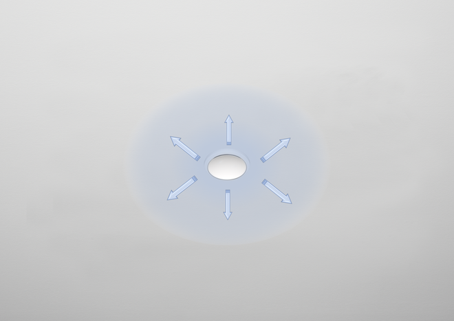 Luchtventielen serie Z/LVS hebben een draaibare schotel. Horizontale uitblaas met radiaal stromingspatroon.