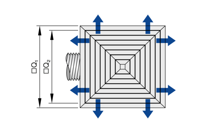 Plafondroosters met vierkant frontrooster. Als toevoerluchtrooster voor comfortzones. Frontrooster met vaste lamellen voor horizontale een- tot vierzijdige uitblaas. Voor inbouw in alle soorten verlaagde plafonds.