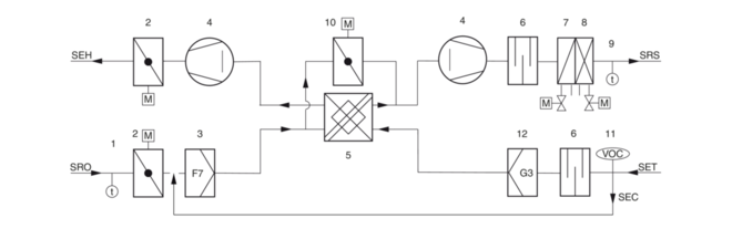 Aansluitend door de warmterugwinning, die in energetisch zinvollere situaties en in geval van vorst gepasseerd kan worden.